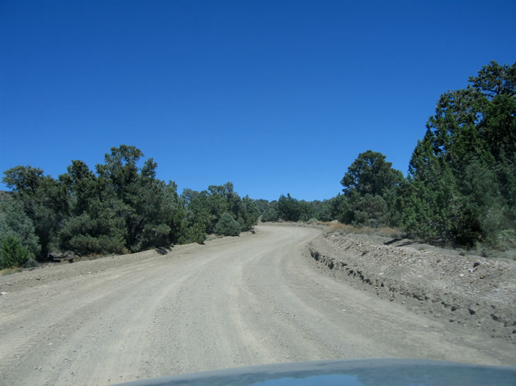 The Coyote Road climbs steadily to over 7,000 feet. Here we're taking a well graded road to check out the Mary Drinkwater Mine which has been reopened and is using a heap leach extraction process.