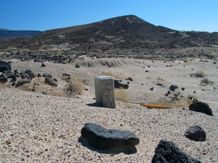 On our way back toward Owens Lake we decide to stop at the "Set your sights on Gunsight Pass" geocache near Gunsight Pass. The geocache is in the Malpais Mesa Wilderness Area and as we hike toward it we run across a "C" Block along the old road alignment. To find out about the old "C" Blocks click here.