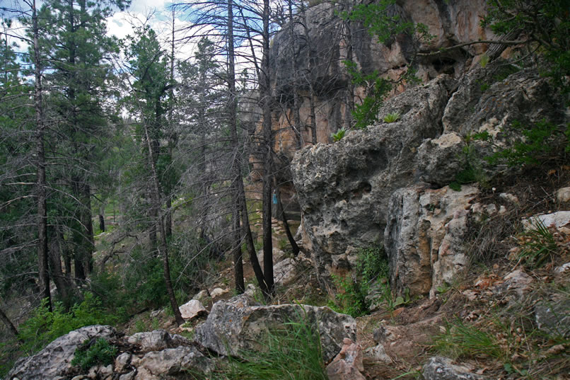 On their way back down to the shelter, Niki and her dad spot Jamie's blue top as she continues to check out the pictographs.