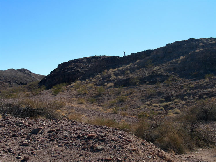Niki makes a detour to try to get a photograph of the Indian shelters from the rim of the canyon across from them.