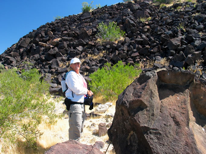 Jamie getting ready to explore the first petroglyph site at Black Knob, which is just to the right as you enter the canyon.