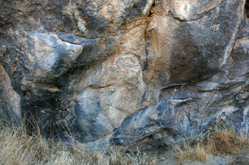 In the center of this photo, although you probably can't see them from this distance, are a series of red daubs above two crossed red lines.