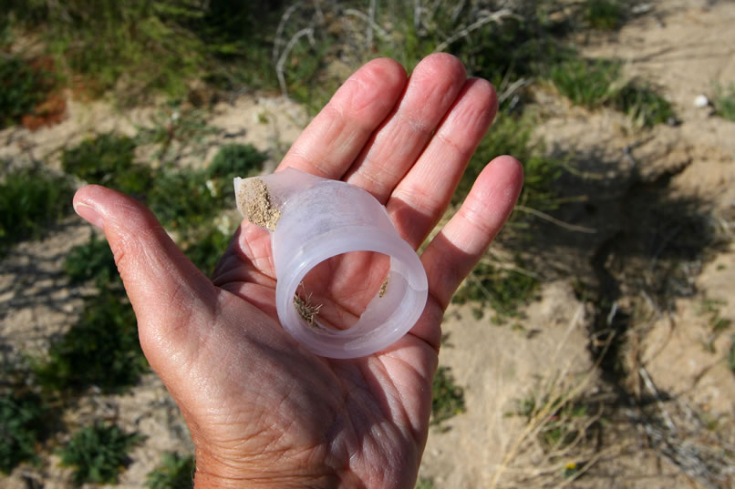 Here's a delicate wide mouthed bottle which has turned a light pink color, indicating that it was produced when manganese dioxide was still used as a clarifying agent. When such glass is exposed to sunlight it typically turns a pinkish to amethyst color. This rough guide lets us know that this bottle was most likely produced in the early 1900's.
