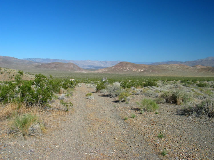 The dim two track that we've been following will soon enter the Naval Air Weapons Station at China Lake. You can just see the signs in the distance.