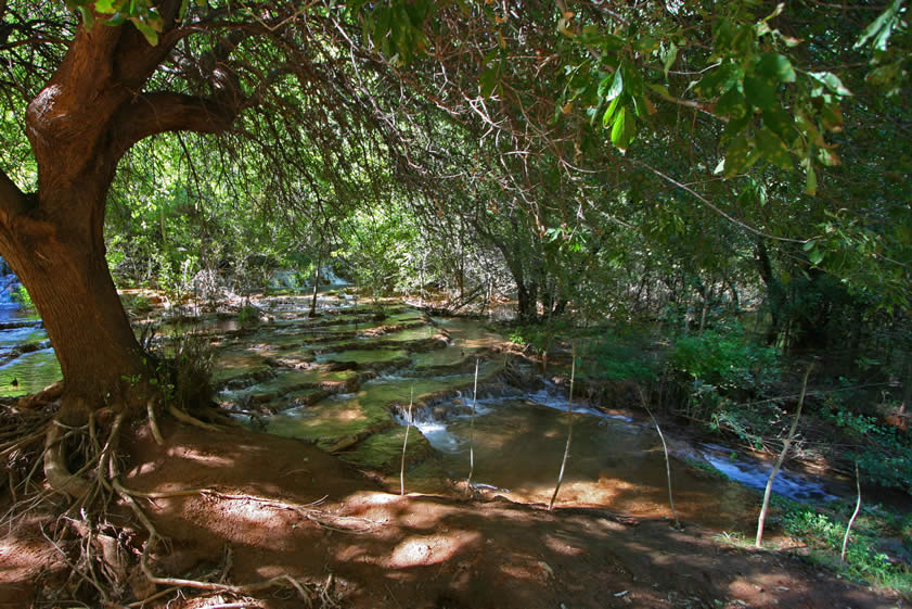 In fact, our walk back to the campground involves a couple of side trips. This first one is over toward Navajo Falls. Here we find a collection of delicate ponds formed by the mineralization in the water.