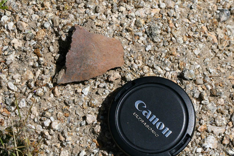 In this seemingly isolated and inhospitable area we come across a good sized pottery fragment just lying at the edge of a wash.