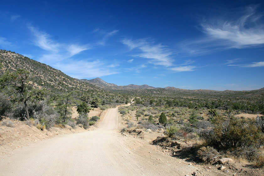 We've gradually left Yucca Valley and Pioneer Town behind us as we've climbed higher into the San Bernardino Mountains. This view along Burns Canyon Road shows the first area that we'll be exploring today.