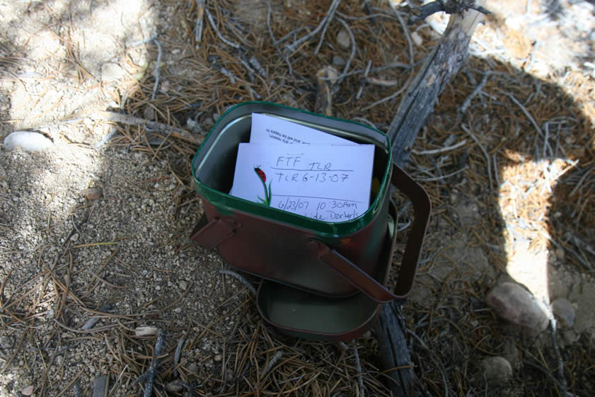 With its camo paint job and creative hanging position, it took us a while to spot this one. Lone Pine on Quad Hill geocache
